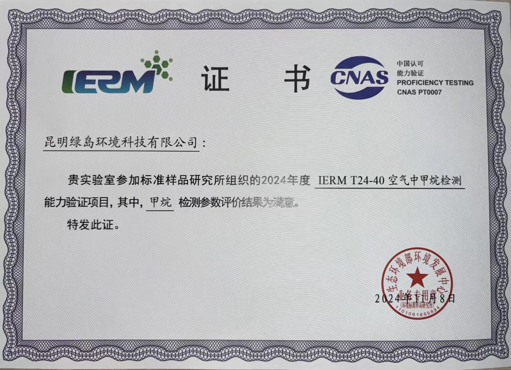 強化能力建設 夯實發(fā)展根基(五) ——昆明綠島環(huán)境科技有限公司喜獲2項能力驗證證書